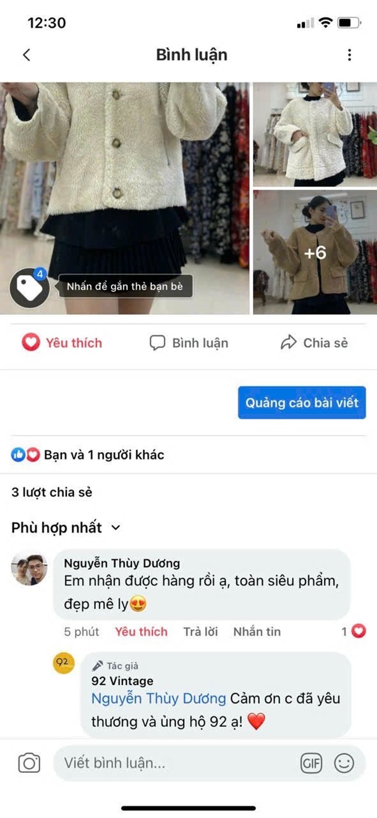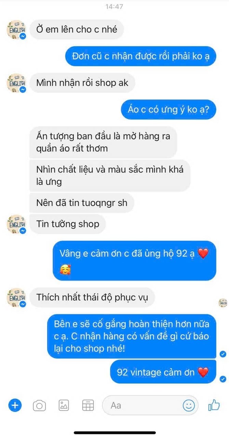 Không cần dùng lời quảng cáo hoa mỹ, hãy để khách hàng tự nói về trải nghiệm của họ khi mua sắm tại 92 Vintage nhé!